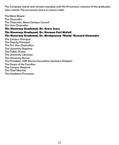 The Company stands and remains standing until the Processions, inclusive of the graduates, have retired. The processions leave in reverse order:
