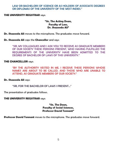“SIR, MY COLLEAGUES AND I ASK YOU TO RECEIVE AS GRADUATE MEMBERS OF OUR SOCIETY THESE PERSONS PRESENT, WHO HAVING FULFILLED THE REQUIREMENTS OF THE UNIVERSITY HAVE BEEN ADMITTED TO THE DEGREE OF BACHELOR OF LAWS OF THIS UNIVERSITY.”