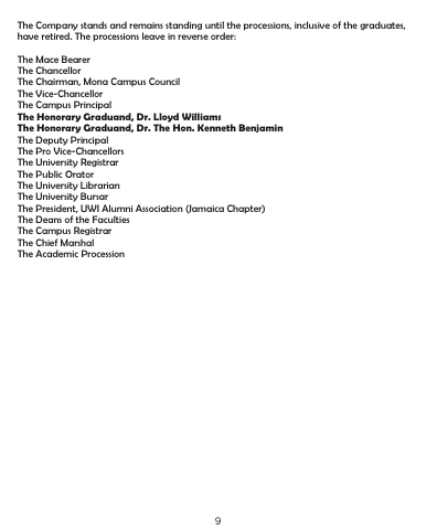 The President, UWI Alumni Association (Jamaica Chapter) The Deans of the Faculties