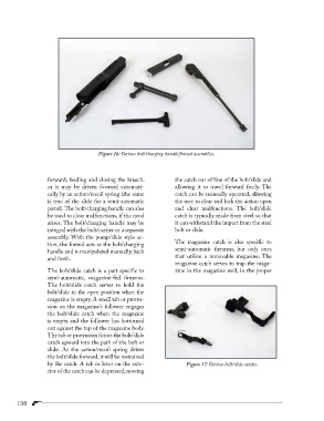 Figure 16: Various bolt/charging handle/forend assemblies.