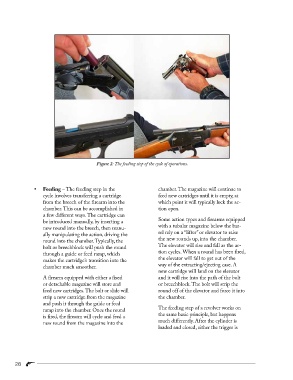 • Feeding – The feeding step in the chamber. The magazine will continue to