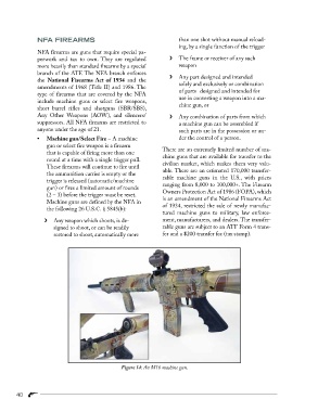 Machine guns are defined by the NFA in of 1934, restricted the sale of newly manufac-
