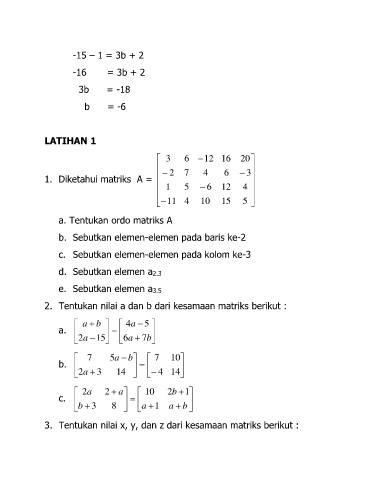 2. Tentukan nilai a dan b dari kesamaan matriks berikut :