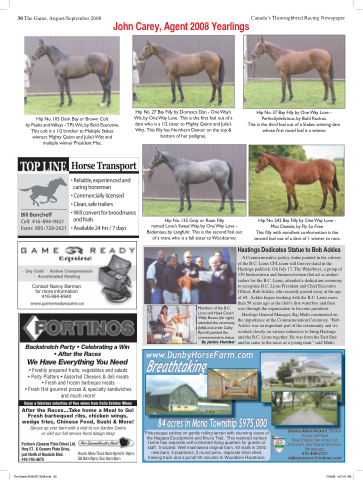 30 The Game, August/September 2008 John Carey, Agent 2008 Yearlings Canada’s Thoroughbred Racing Newspaper