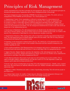 Various organizations have laid down principles for risk management. There are risk management principles by