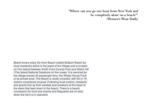 “Where can you go one hour from New York and be completely alone on a beach?” (Women’s Wear Daily)