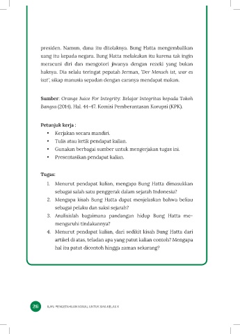 presiden. Namun, dana itu ditolaknya. Bung Hatta mengembalikan