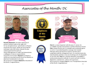 We are proud to recognize Wojciech as Associate of We are proud to recognize Pete D. as our Transportation Associate