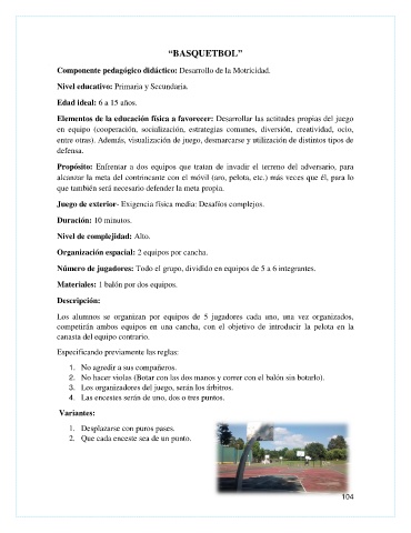 entre otras). Además, visualización de juego, desmarcarse y utilización de distintos tipos de