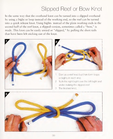 second half of the reef knot, a slipped version, sometimes called a “bow,” is