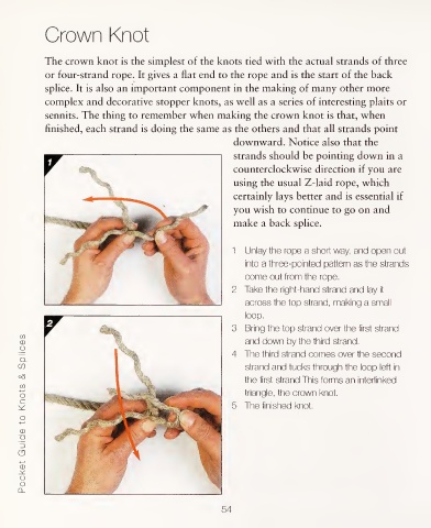 The crown knot is the simplest of the knots tied with the actual strands of three