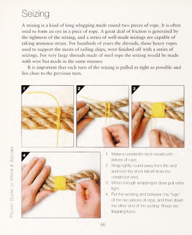 the tightness of the seizing, and a series of well-made seizings are capable of