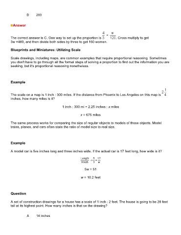 The correct answer is C. One way to set up the proportion is . Cross multiply to get