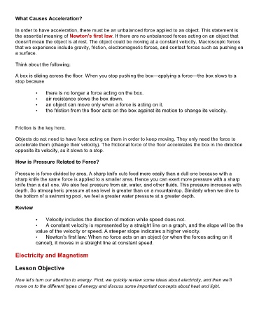 that we experience include gravity, friction, electromagnetic forces, and contact forces such as pushing on