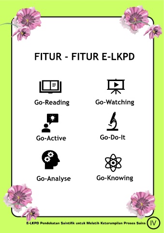 FITUR - FITUR E-LKPD Go-Reading Go-Watching Go-Active Go-Do-It Go-Analyse Go-Knowing E-LKPD Pendekatan Saintik untuk Melatih Keterampilan Proses Sains IV