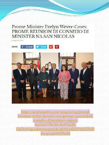 https://arubanative.com/2019/10/29/prome- minister-evelyn-wever-croes-prome-reunion-di- conseho-di-minister-na-san- nicolas/?fbclid=IwAR3QX- OaO07Oqi4zkn7mzqvxGICofcNGrdZDF5SFdXRl8 8xrqez9hNHThzM