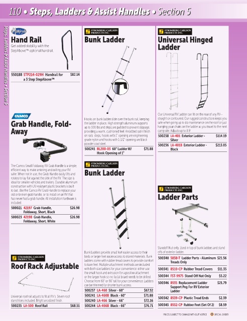 Universal roof rail adjusts to fit all RV's. Seven roof 500241 LA-460B Black - 60" $71.88 500342 8539-CP Plastic Tread Ends $2.39