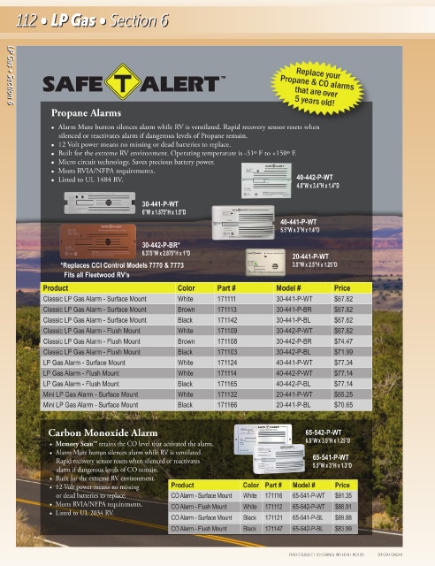 • Meets RVIA/NFPA requirements. CO Alarm - Flush Mount 171112 65-542-P-WT $88.91