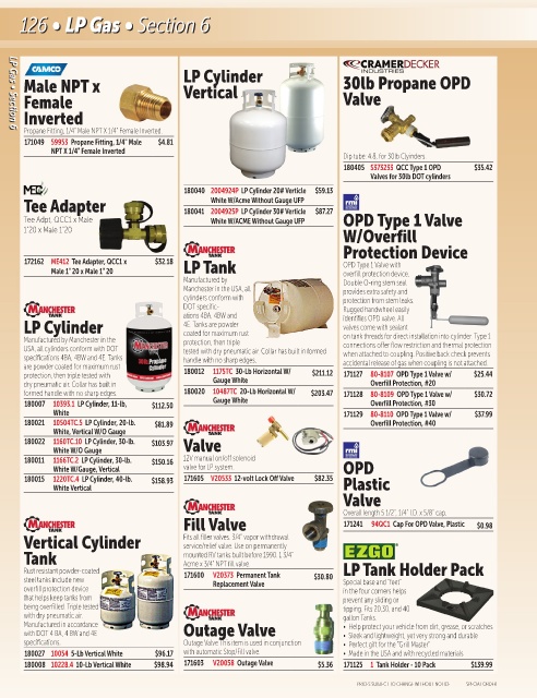 180015 1220TC.4 LP Cylinder, 40-lb. $158.93 171605 V20533 12-volt Lock Off Valve $82.35 Plastic