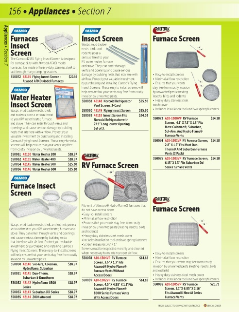 350062 42151 Water Heater 400 $18.97 350075 A10-1303VP RV Furnace Screen, $14.18