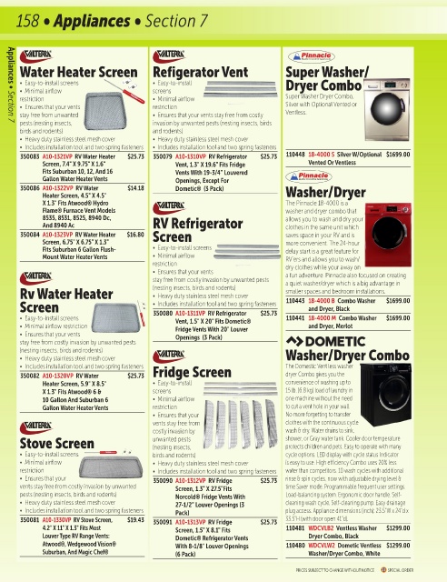 • Easy-to-install screens 350080 A10-1311VP RV Refrigerator $25.73 110441 18-4000 M Combo Washer $1699.00
