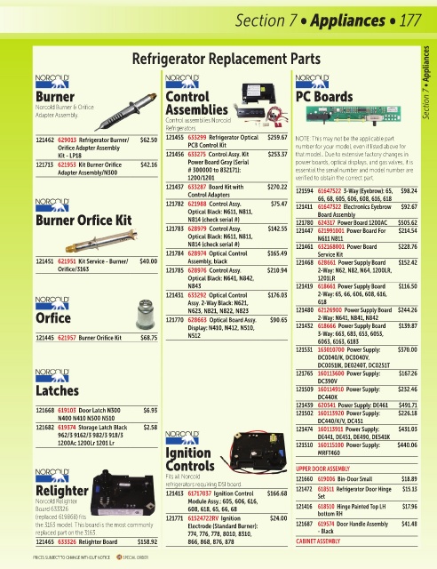 121451 621951 Kit Service - Burner/ $40.00 Assembly, black 121468 628661 Power Supply Board $152.42