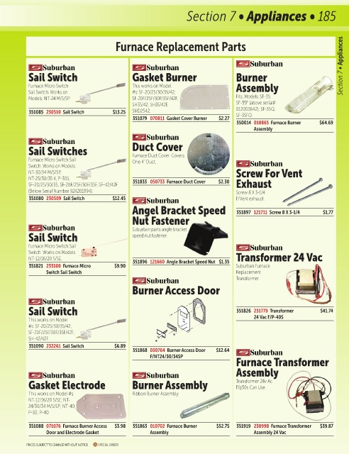 351088 071076 Furnace Burner Access $3.98 351863 010702 Furnace Burner $52.75 351919 230998 Furnace Transformer $39.87