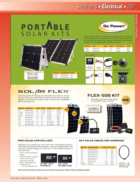 PART NO. SOLAR FLEX AMPS WATTS CONTROLLER PRICE 100W