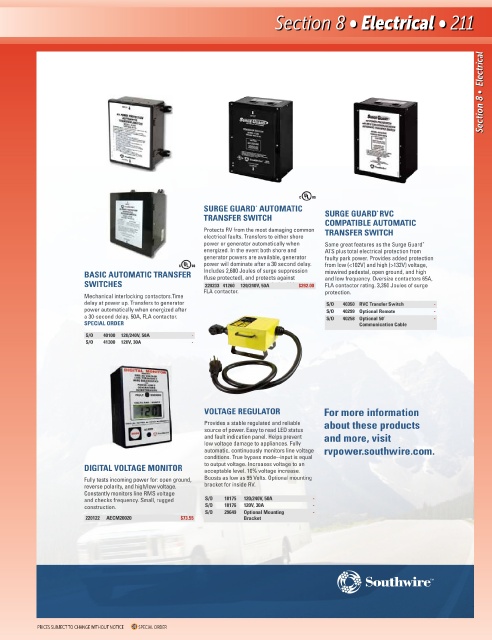 to generator power when it TRANSFER SWITCH SURGE GUARD RVC