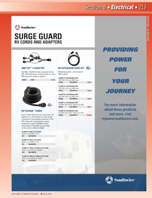 Super flexible 50 amp cords, rating from -50 120-250V, 50A, 6/3-8/1, M&F ends, STW $168.56 and more, visit