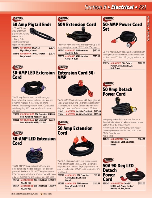 220267 A10-3050EHLED 30A Extension $145.00 220264 A10-5050EH 50a 50' Ext Cord W/hdl $325.00