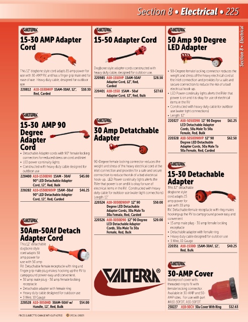 • Detachable Adapter cords with 90° female locking 50a Female, Red, Carded