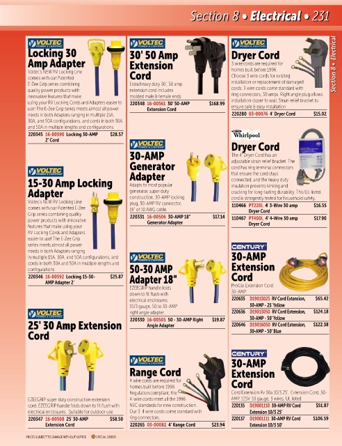 220347 16-00508 25' 30-AMP $58.50 ring connectors. 220137 D19001111 30-AMP RV Cord $106.59