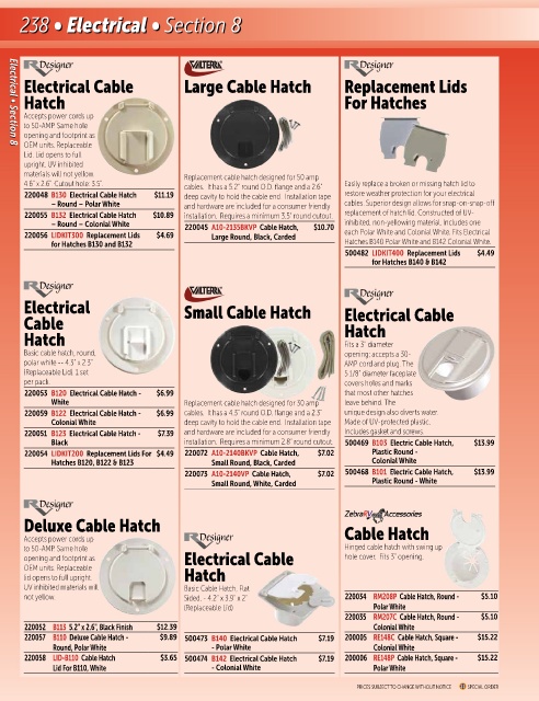 220073 A10-2140VP Cable Hatch, $7.02 500468 B101 Electric Cable Hatch, $13.99