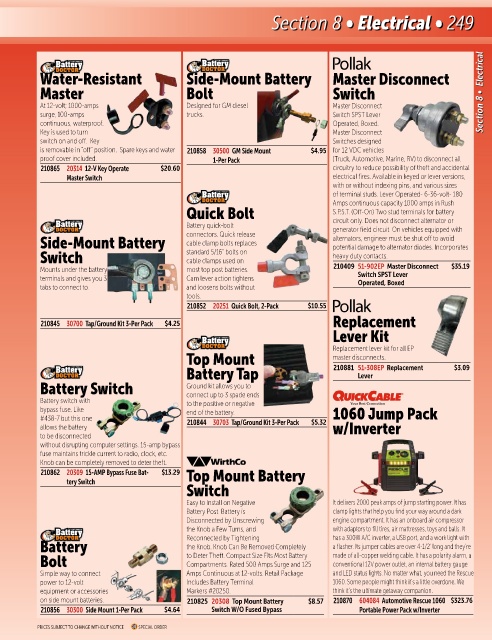 on side mount batteries. 210825 20308 Top Mount Battery $8.57 210870 604084 Automotive Rescue 1060 $323.76