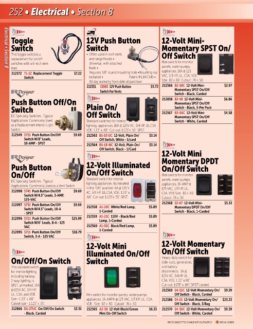 212097 S731 Push Button On/Off $9.69 212358 A1-10C White/Red Lamp, $5.89 212368 S2-67 12-Volt Mini- $5.33