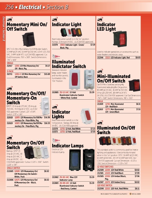 212605 12695 12V Momentary On/ $8.02 212580 12505 12V Red/White $8.02