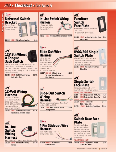 212226 13945 In-Line Switch Wiring $15.40 212909 WH211-4 4-Pin Wiring $13.83 212558 12305 Single Switch Base & $5.51
