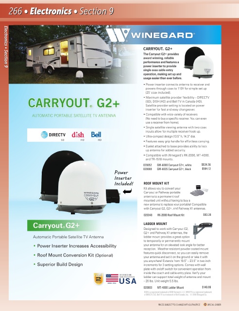 • Compatible with Winegard's portable mounts Carryout or Pathway portable