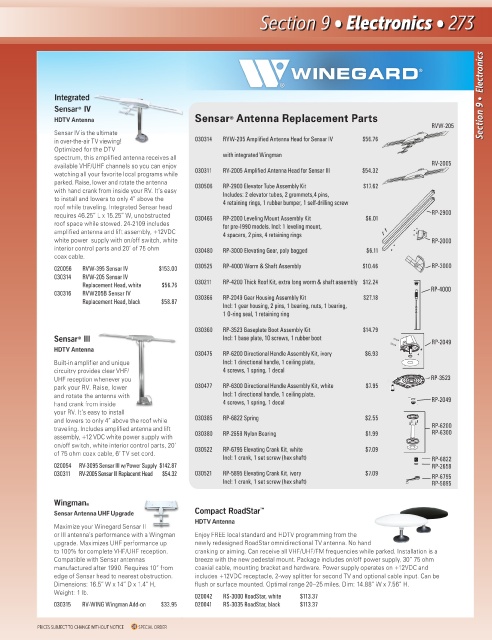 030316 RVW205B Black Sensar IV $58.87 030311 RV-2005 Amplified Antenna Head for Sensar III $54.32