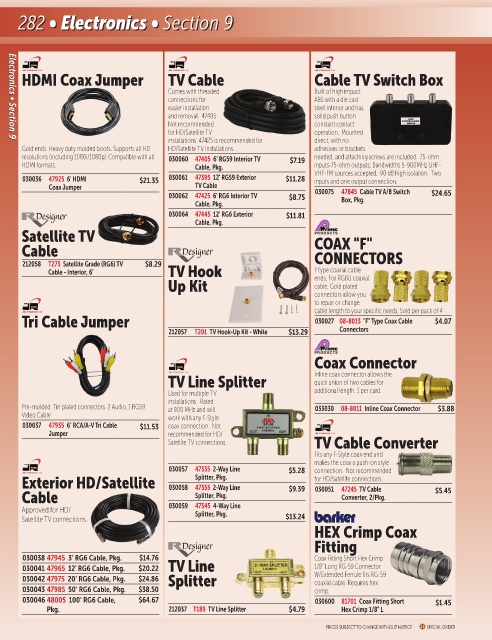030062 47425 6' RG6 Interior TV $8.75 Box, Pkg. $24.65