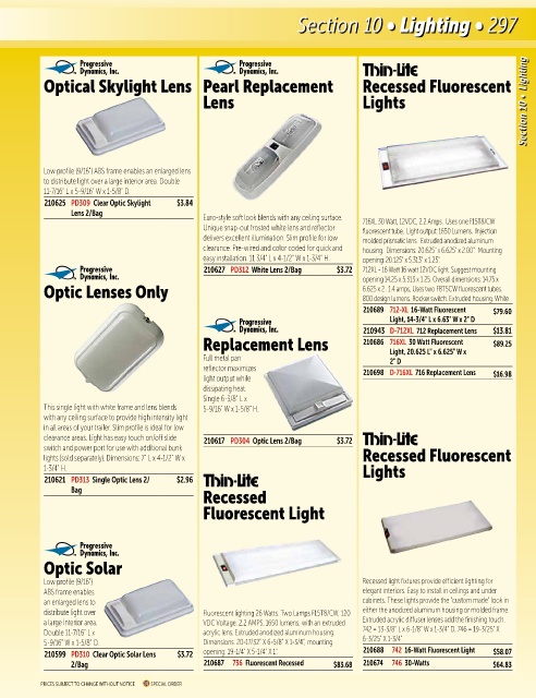 210599 PD310 Clear Optic Solar Lens $3.72 opening: 19-1/4" X 5-1/4" X 1". 210688 742 16-Watt Fluorescent Light $58.07