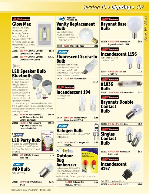 211317 54727 Bulb 89 Auto Interior $2.03 016-AB10 Amberizer Anti $4.39 Bulb #3157 incandescent bulb.
