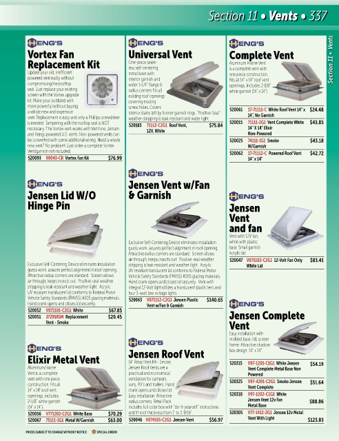520067 75111-1G1 Metal W/Garnish $63.00 520046 V074101-C2G1 Jensen Vent $56.97 Vent With Light $123.83