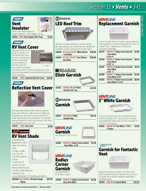502166 015-201612 RV Vent Shade $53.95 520366 VA0445-28 Radius Corner Garnish $5.39 Off-White finishes.