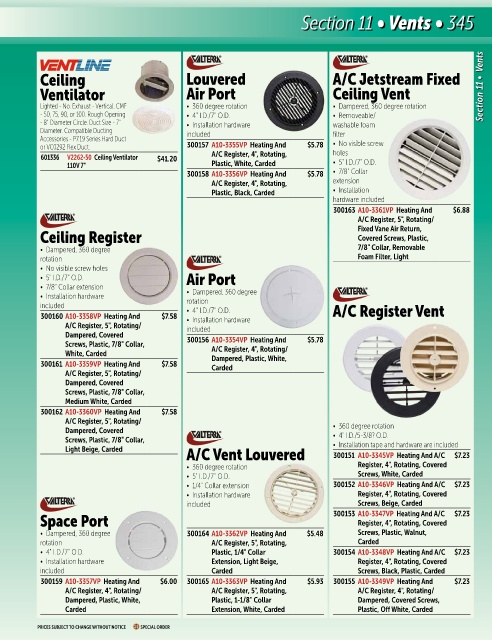 Ventilator Air Port Ceiling Vent Section 11 • Vents