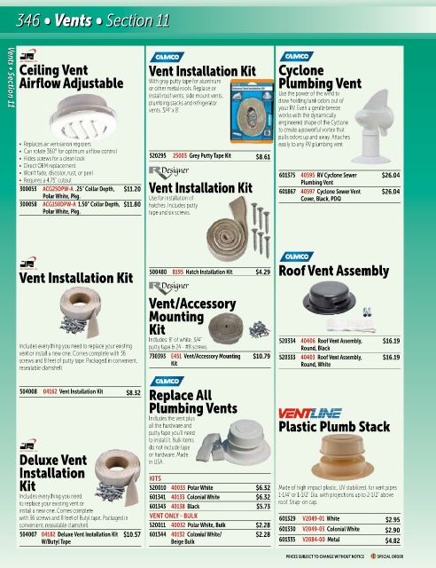 504007 04182 Deluxe Vent Installation Kit $10.57 601344 40132 Colonial White/ $2.28