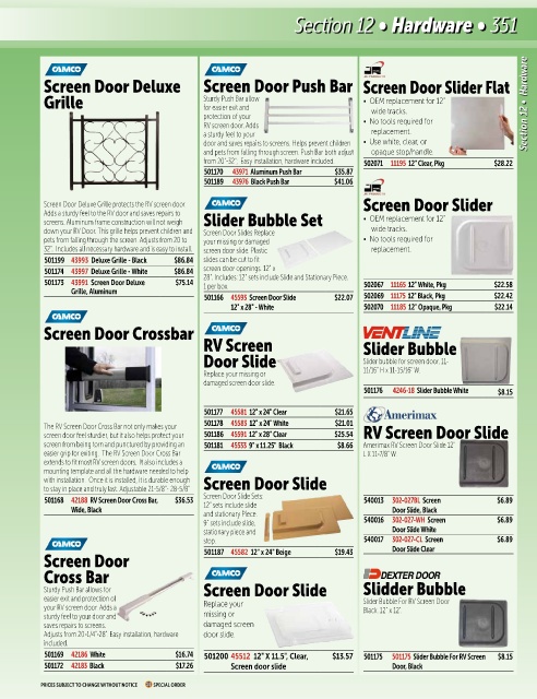 501168 42188 RV Screen Door Cross Bar, $36.53 Screen Door Slide Sets: 540013 302-027BL Screen $6.89