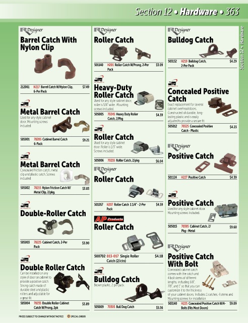 505004 70235 Double Roller Cabinet $3.89 503140 H225 Concealed Positive Catch W/4- $9.09