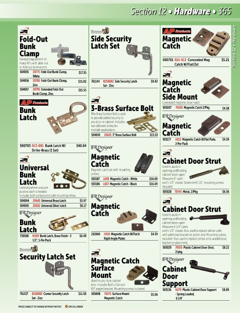 504056 20785 Fold-Out Bunk Clamp, $15.02 761144 B2588BZ Side Security Latch $8.42 Magnetic